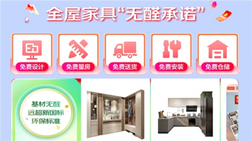 與家庭裝修不同,企業辦公場所的人流量較大、通風相對較差,因此為了員工的安全考慮,企業對于建材是否含甲醛更為看重。另一方面,如果采用甲醛含量較高的建材裝修,即便可以通過較長時間的通風進行除醛,但企業卻要為此支付更高的時間和租金成本。為了更好地幫助企業解決這一問題,居家企業工裝節則通過選用遠超新國標環保標準的無醛基材,以全屋家具的“無醛承諾”,為企業用戶帶來更加綠色低碳的一站式工裝解決方案,讓企業可以更快入駐新的辦公場所。