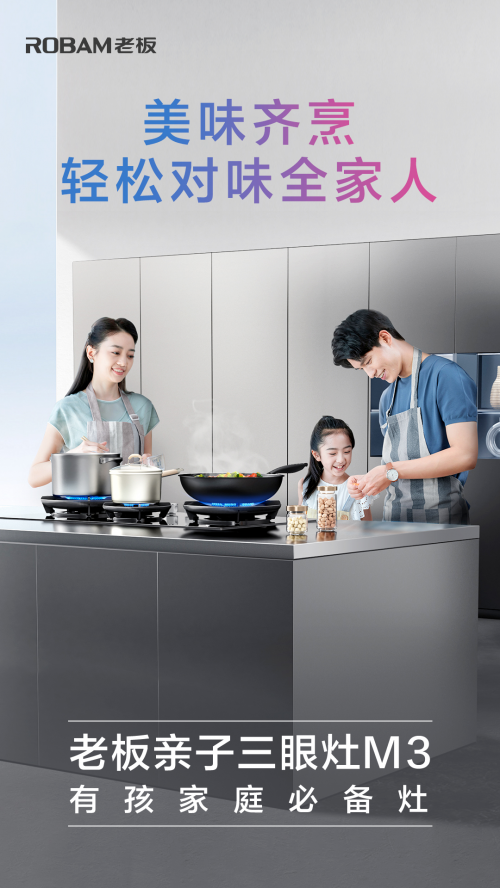 老板電器聚焦中式烹飪44年,一直堅定的站在用戶角度,洞察需求,降低烹飪門檻,讓用戶喜歡烹飪、享受烹飪。老板電器發(fā)布的老板親子三眼灶M3 ,正是基于家庭用戶需求打造,為多口之家?guī)眢@喜。相信老板電器未來會繼續(xù)以創(chuàng)新科技創(chuàng)造中國新廚房,引領(lǐng)人類烹飪生活方式變革,創(chuàng)造人類對廚房生活的一切美好向往。