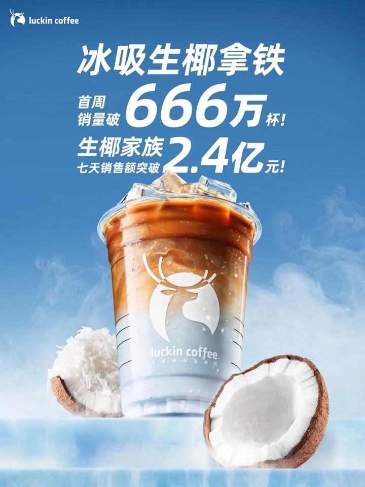 數據是最好的證明:近日,瑞幸官方宣布「生椰拿鐵」上市兩周年銷量已突破3億杯!最近另一款新品「冰吸生椰拿鐵」,上市一周銷量就突破了666萬杯,打破了2022年10月由「生酪拿鐵」創下的上市一周659萬杯的新品銷量紀錄。