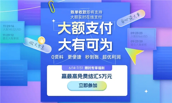 值得一提的是,6月14號至7月31號期間,PingPong福貿展開限時專享賬單收款福利:最高免費提現5萬額度。用戶成功入賬1次可得免費提現券1萬額度;成功入賬3次可得免費提現券3萬額度;成功收取歐洲、北美買家付款且金額≥$1000,可得免費提現券1萬額度。