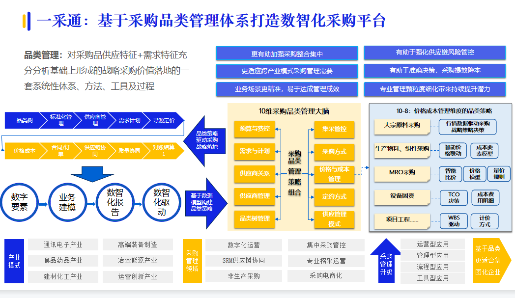 還有一采通,基于采購品類管理體系,打造了數智化采購平臺。