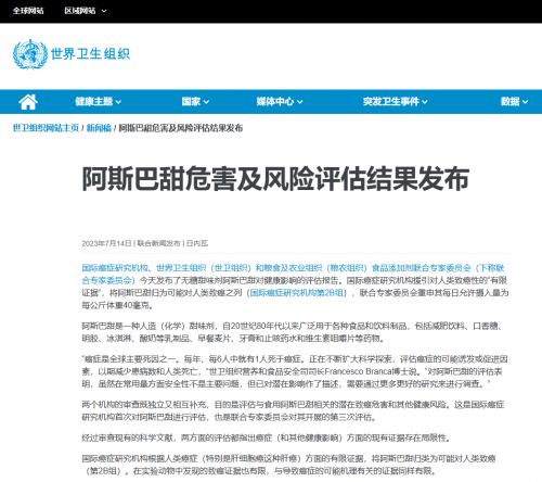 評估結果出爐!世衛宣布:阿斯巴甜可能致癌 2023-07-14