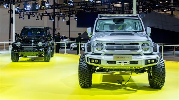 超境汽車展臺上的另一重磅焦點,便是超境汽車個性化定制配件子品牌——PLAY.STH的正式亮相,越野套件、磁流變減振器、輪轂等主要產品全數登場。