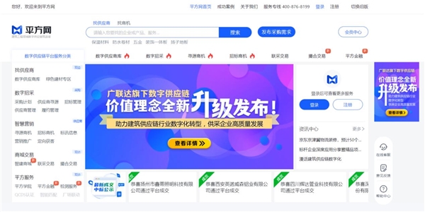 數字供應鏈產品理念整體升級后,以“客戶為中心”的服務宗旨,通過“兩大解決方案”助力建筑供應鏈行業內企業進行數字化轉型及升級,圍繞平方網、平方招采等平臺,讓采購業務合規化、專業化、系統化,讓建材供應商降低營銷成本和風險,增強企業的競爭力。