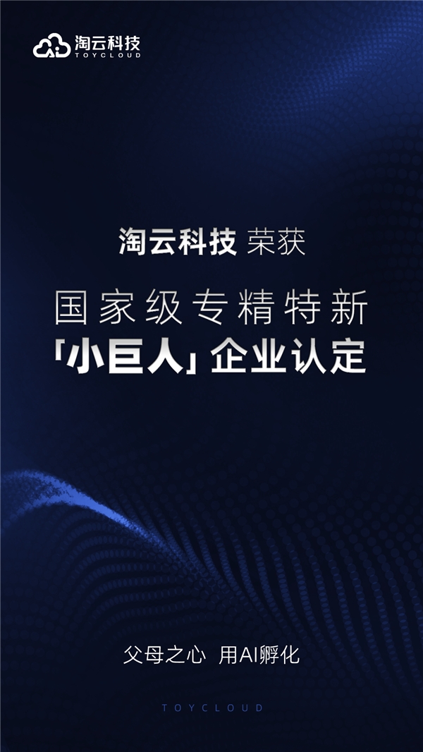 本次淘云科技被認定為第五批國家級“專精特新”小巨人企業,是工信部對淘云科技在“AI+兒童”領域的研發實力和創新能力的肯定。此次獲獎有助于淘云科技持續拓展兒童人工智能核心技術,不斷提高產品核心競爭力,提升品牌知名度,助力淘云科技的高質量發展之路越走越寬。