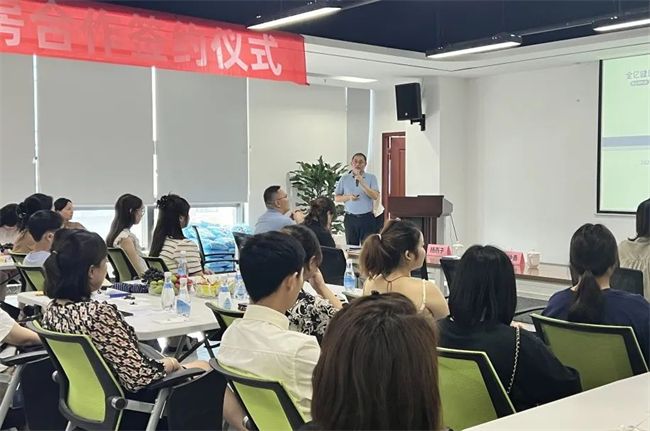 為了讓員工們快速地融入新的工作環境,盡快跟上新的工作步伐,在簽約會上,全億健康成都分部總經理吳仲勇,副總經理何英以及各部門負責人,分別從企業文化、組織架構、前期工作籌備、個人成長經歷等方面為大家做了分享。