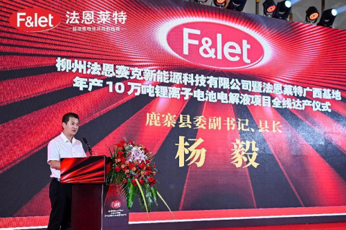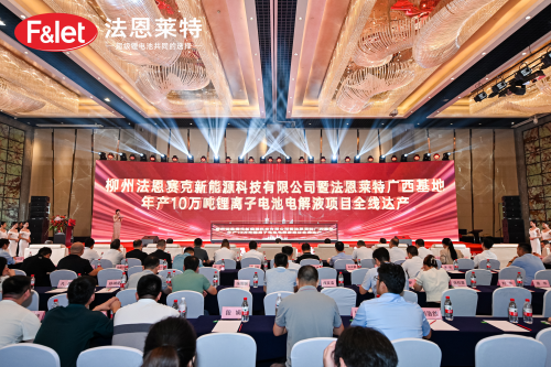8月5日,柳州法恩賽克新能源科技有限公司暨法恩萊特廣西基地年產10萬噸鋰離子電池電解液項目全線達產儀式在廣西柳州盛大舉行。柳州市人民政府副市長湯振國,鹿寨縣人民政府縣長楊毅,法恩萊特公司董事長石俊峰,總經理邵俊華等出席儀式,共同見證這一重要時刻。