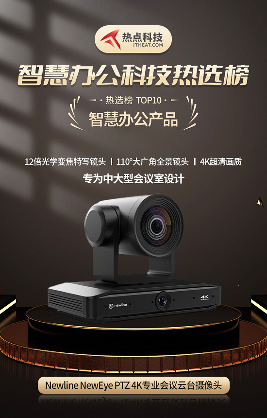 綜上所述,經過熱點科技編輯團隊探討,祝賀NewEye PTZ 4K專業會議云臺攝像頭入選智慧辦公科技熱選榜Top10。