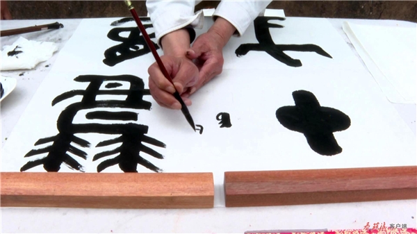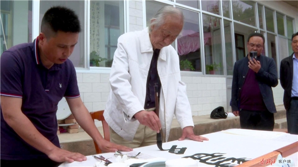 在農家小院,閻正正在聚精會神地揮毫潑墨,他在筆墨的運用上別出心裁、匠心獨運,流暢的線條蒼勁有力,書法作品淋漓盡致地展現于尺幅之上。談起他創作的靈感,閻正說,“莊浪歷史悠久、文化底蘊深厚、森林植被覆蓋率高,儼然一幅天然山水畫。莊浪縣云崖寺自然風光秀麗,石窟藝術精美,有遠山、有水庫、有寺廟,它完全具備中國畫的每一個條件。”
