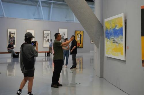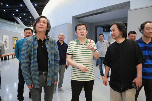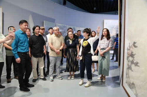 開展當(dāng)日上午,山東美術(shù)館與內(nèi)蒙古文藝界領(lǐng)導(dǎo)嘉賓、藝術(shù)家一同參觀展覽。隨后,以“黃河故事”為主題的展覽研討會順利舉辦。