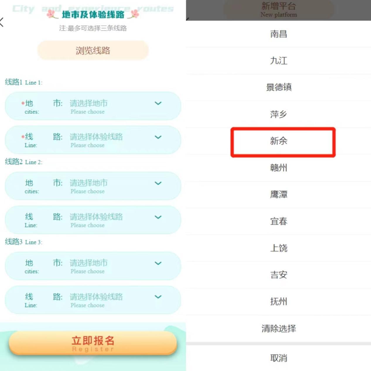 點(diǎn)擊活動頁面的“線路選擇說明”,向下滑動至#新余市#線路,點(diǎn)擊“查看詳情”可查看線路安排。