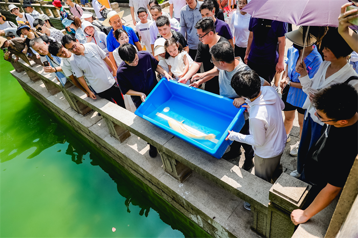 此次共邀請了150組家庭共同參與儀式,親手放下錦鯉,許下美好心愿,收獲祝福與好運。