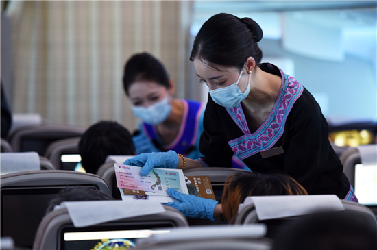 航班上,旅客不僅從平面的書(shū)畫中學(xué)習(xí)知識(shí),還通過(guò)視頻、語(yǔ)音、VR等形式了解中國(guó)歷史文化。主題航班為旅客準(zhǔn)備了限量紀(jì)念款登機(jī)牌,旅客通過(guò)“時(shí)光隧道”乘坐“滇地瑰寶號(hào)”航班在“彩云之南”尋夢(mèng)探源。登機(jī)牌背面印有云南省博物館三件入選央視《國(guó)家寶藏》的文物,旅客可以通過(guò)機(jī)上Wi-Fi掃描相應(yīng)的二維碼,聆聽(tīng)機(jī)長(zhǎng)講解文物故事。除此之外,活動(dòng)還準(zhǔn)備了VR眼鏡,旅客在萬(wàn)米高空“身臨其境”走進(jìn)博物館,體驗(yàn)“數(shù)字文史”建設(shè),立體學(xué)習(xí)文物知識(shí)。