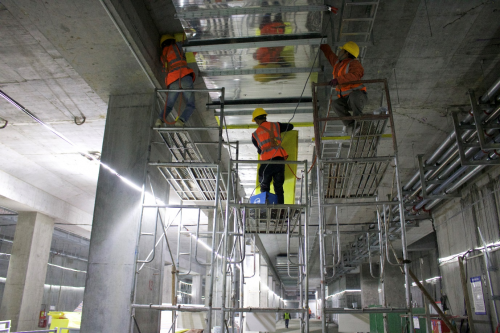 5月1日,在國際勞動節(jié)來臨之際,來自中國中鐵電氣化局集團(tuán)的建設(shè)者,在合肥地鐵建設(shè)一線用堅(jiān)守崗位的形式度過這一天。在合肥市軌道交通2號線東延線工程機(jī)電系統(tǒng)(風(fēng)、水、電)安裝及裝修總承包03標(biāo)工程的施工現(xiàn)場能夠看到中鐵電化人忙碌的身影,他們用實(shí)際行動踐行著“促創(chuàng)干,爭一流”的電氣化精神,共同為合肥市軌道交通工程的建設(shè)貢獻(xiàn)著自己的一份力量。