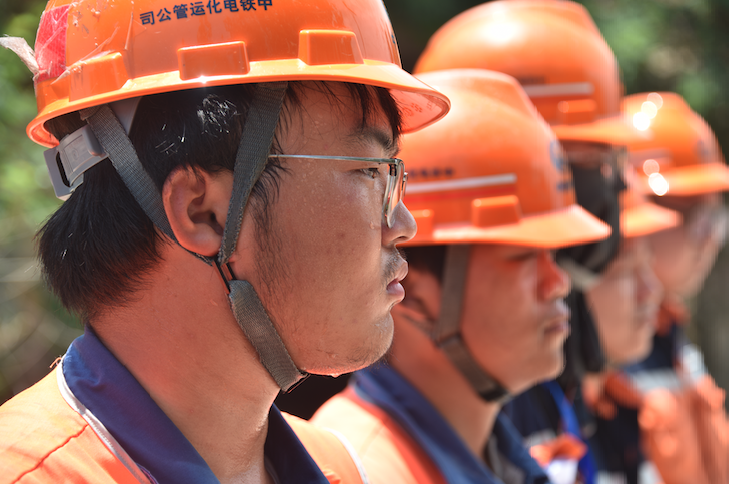 11點(diǎn)55分,封鎖命令一下,劉冉一馬當(dāng)先帶著大家沖到了線路上。由于鐵路線兩邊幾乎沒(méi)有任何遮陽(yáng)的物體,經(jīng)過(guò)一上午的暴曬,鐵路線上的溫度已經(jīng)高達(dá)49.8℃,而現(xiàn)在頭頂上的太陽(yáng)任然不斷地給鐵路上的道砟加熱,此時(shí)的鐵路線上,就像是一個(gè)巨大的烤箱。劉冉看著遠(yuǎn)處地面上的熱浪,拽了拽濕透后緊貼后背的衣服,招呼著后面的員工“大家動(dòng)作快點(diǎn),天窗只有109分鐘,不僅要檢修500米的設(shè)備,還要處理3處缺陷。”