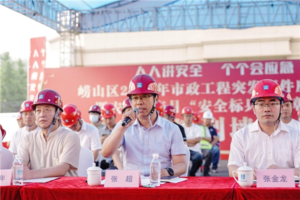 青島市嶗山區城市管理局副局長張超,青島市市政公用工程質量安全監督站綜合科科長張金龍,嶗山區中韓街道應急管理辦公室主任尚萬年,區衛生健康局醫政醫管科副主任楊勇,市應急志愿者協會會長李愛東,公司黨委副書記、總經理呼雄偉,副總經理路朝輝,以及嶗山區城市管理行業企業和在建市政工程等63家相關單位代表,共120人出席活動。