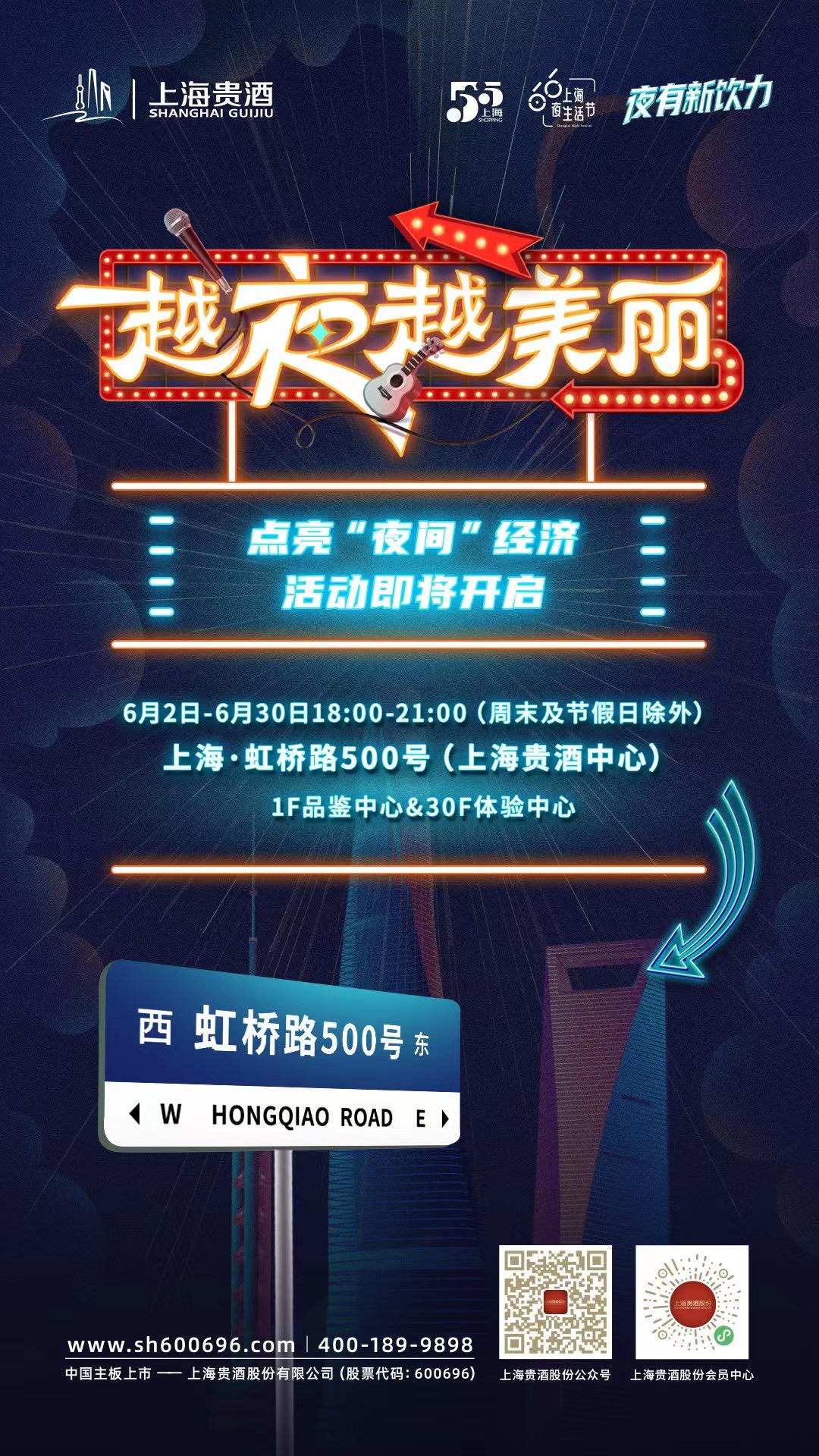 上海貴酒創新策劃的“虹橋路500號越夜越美麗”點亮“夜間”經濟系列活動也將從6月2日啟幕,橫跨整個6月,邀請品牌摯友齊聚虹橋路500號——上海貴酒徐匯品鑒中心和體驗中心,點亮商圈潮流新“夜”態,“飲”燃消費新活力。從沉浸品鑒、花式特調到音樂、美食、青春街舞、房車生活,上海貴酒不斷打破創新邊界,將上海精神和品牌元素融入活動設計中,打造出更高品質、差異化的夜間消費場景,在夜色中點亮城市文化名片,讓魔都“越夜越美麗”!