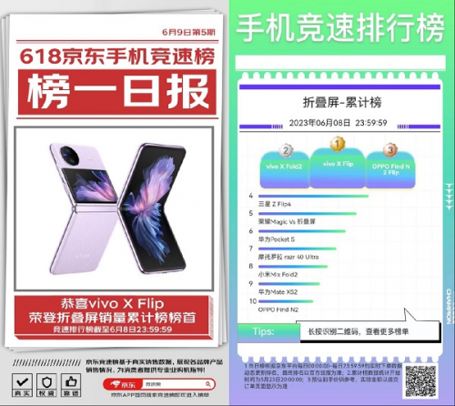 vivo X Flip榮登京東618折疊屏手機銷量累計榜榜首 跟榜買手機省錢又省心