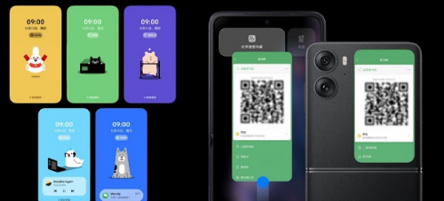 OPPO Find N2 Flip外屏寵物則是卡通版,也很可愛,應用雙屏同開的功能很出彩,一邊用內屏回消息,一邊展示外屏二維碼進行掃碼,太方便了。