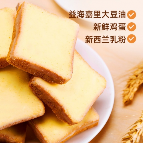 用料上,梅尼耶干蛋糕全程采用現代先進工藝用心烘焙,優選進口新西蘭乳粉和益海嘉里大豆油、精選優質小麥粉和白砂糖,新鮮蛋液制作,不加一滴水,不添加防腐劑、色素,0反式脂肪酸,老人小孩也可以吃的健康,吃得放心!