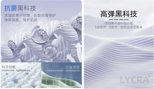 更系統(tǒng)來講,VOVOS 的“黑科技”大概有以下幾點(diǎn):① 無痕工藝:運(yùn)用德國(guó)漢高膠水,良好的粘接強(qiáng)度和耐熱性支撐性強(qiáng),貼合無痕。② 萊卡面料:極大提高面料的彈性和延展性,與其他纖維對(duì)比伸展度可以達(dá)到500%。貼合人體,束縛力小。除此之外,銀離子、石墨烯面料和涼感紗織等科技也能著重提升抗菌、透氣與涼感和防紫外線等功能。