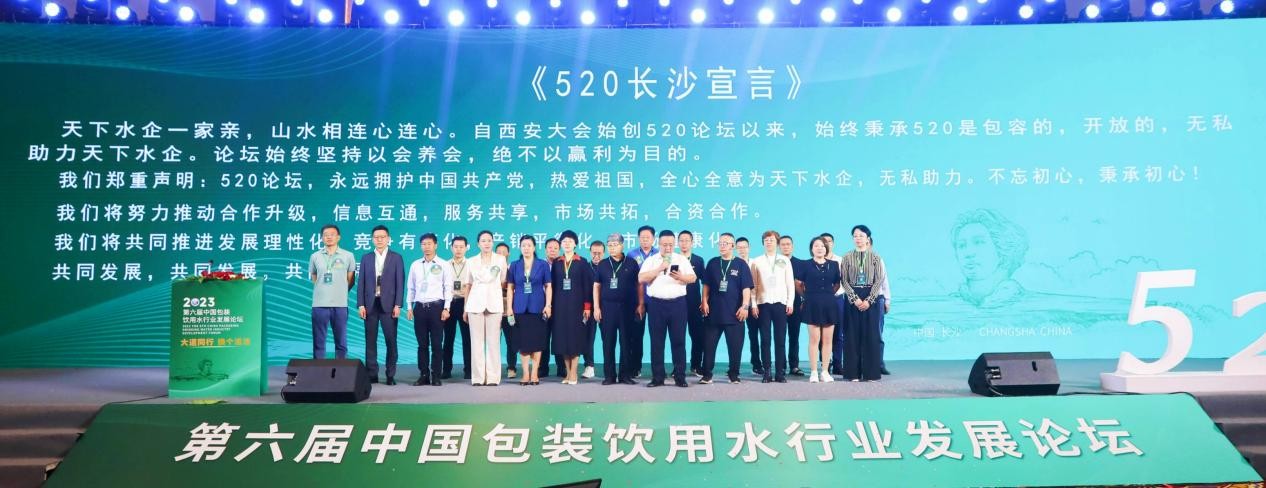 本屆中國包裝飲用水行業發展論壇(長沙 520 大會),在嘉賓分享前開啟了兩個感人的板塊,即《嗨,520!》行業發展精神的視頻和中國包裝飲用水行業發展論壇理事代表鏗鏘有力的《520宣言》:520論壇永遠擁護中國共產黨,全心全意為天下水企無私助力······。真誠又真實的《嗨,520!》和《520宣言》,贏得了現場嘉賓、與會者的陣陣掌聲與喝彩。