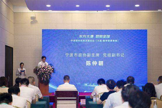7月6日,在2023中國國際數字和軟件服務交易大會上,寧波服務貿易發展論壇(大連·數字貿易專場)成功舉辦。寧波市政協副主席、黨組副書記陳仲朝致辭并發表重要講話。