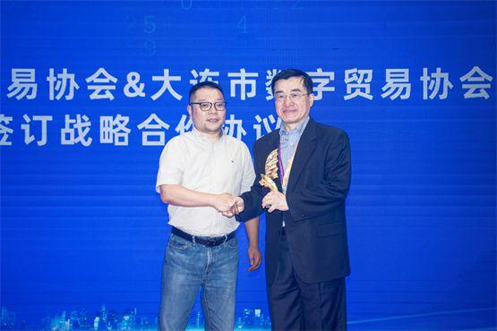 寧波市服務貿易協會與大連市數字貿易協會簽訂戰略合作協議并贈送“東方服貿港-大連”友好獎杯,通過強強聯手,抱團搶抓新機遇,逐浪“數貿”新藍海。