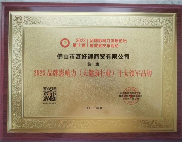 2023年7月21日-7月22日,2023(第十屆)品牌影響力發展論壇暨成果發布活動在北京舉行。佛山市甚好御商貿有限公司及旗下品牌甚好御,憑借出眾的產品力及品牌力獲得了各界的高度認可,榮獲“2023品牌影響力100強”“2023品牌影響力 (大健康行業)十大領軍品牌”。甚好御董事長王雄,榮獲“2023品牌影響力杰出創新人物”。