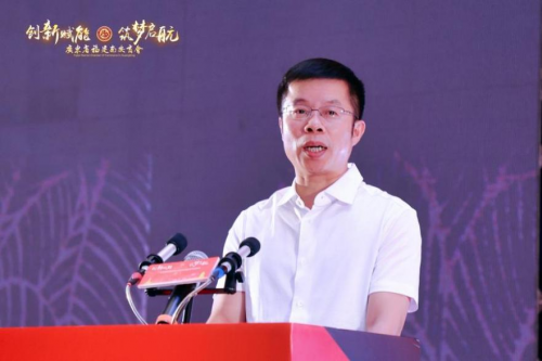 就職典禮的最后,是廣西南寧南安商會(huì)會(huì)長蘇清全代表兄弟商會(huì)致賀辭。