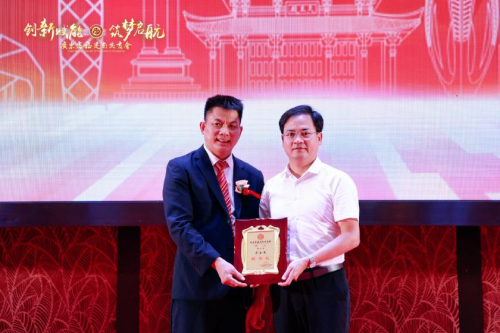 廣州市工商聯(lián)副主席余劍春為理事長顏龍坤授牌