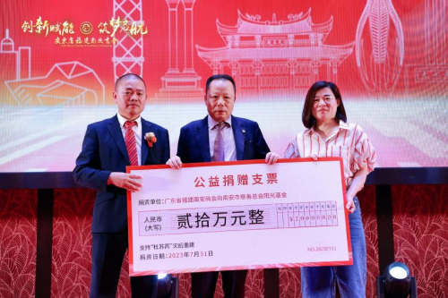 就職典禮上,廣東省福建南安商會(huì)積極響應(yīng)南安市委統(tǒng)戰(zhàn)部、市工商聯(lián)、市慈善總會(huì)號召,向南安市同心陽光基金捐贈(zèng)人民幣20萬元,用于助力家鄉(xiāng)“杜蘇芮”臺風(fēng)災(zāi)后重建工作。
