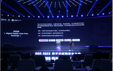 在大會發布儀式上,懸鏡安全正式對外公布了中國首個數字供應鏈SBOM格式——DSDX(Digital Supply-chain Data Exchange ) 。DSDX由OpenSCA社區主導發起,匯聚開源中國、電信研究院、中興通訊等甲方用戶SBOM落地實踐經驗與安全廠商技術應用視角,針對性適配中國企業實戰化應用場景。其目標是成為數字供應鏈安全治理與運營的核心技術抓手,以助力行業將軟件供應安全升級為數字供應鏈安全。