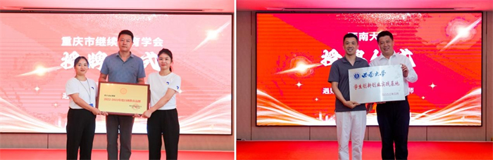 高正教師深耕教師培訓領域多年,以其專業的教學能力,優質的教學服務,強大的師資力量收獲了學員好評和社會各界的高度認可。本次大會上,重慶市繼續教育學會向高正教師授予了“2022-2023年度口碑教育品牌”稱號,同時,西南大學還授予了高正教師“西南大學學生創新創業實踐基地”。重慶市繼續教育學會秘書長種向東和西南大學歷史與民族學院副院長王勇紛紛表示,希望高正教師能夠再接再厲,繼續用高質量教學服務學員,為教師行業賦能,同時勇擔社會責任,助力更多學子成長。