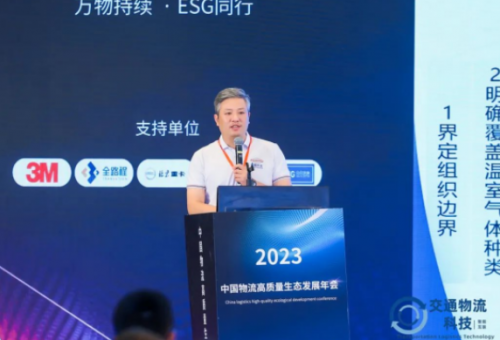大會伊始,由中國交通運輸協會《人民交通》雜志社社長鄭德嶺先生致辭。鄭德嶺社長致辭表示雙碳不僅僅對于氣侯,更是企業應對不同環境市場氣侯變化的抓手,更是經濟發展和規則主導權博弈的焦點。安全韌性和綠色低碳是未來物流生態發展的主要內容。當前面對復雜多變的國際環境和瞬息萬變的技術革新,企業應盡快把握方向,謀篇布局,在激烈的市場布局中站領先機。