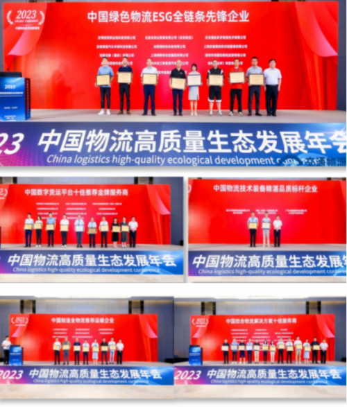 本次峰會設立了2023中國物流優秀創新案例,共計公布了8大獎項,分別是:中國綠色物流ESG全鏈條先鋒企業、中國數字供應鏈科技創新高效卓越之星、中國數字貨運平臺十佳推薦金牌服務商、中國物流技術裝備精湛品質標桿企業、中國物流推薦車輛、中國綜合物流解決方案十佳服務商、中國制造業物流推薦運輸企業、中國物流/數字物流領軍人物,并由鄭德嶺社長為獲得榮譽的企業進行授牌。(頒獎儀式)