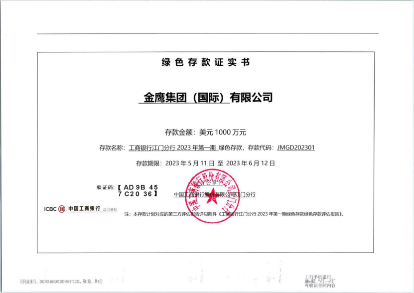 金鷹集團綠色存款證實書