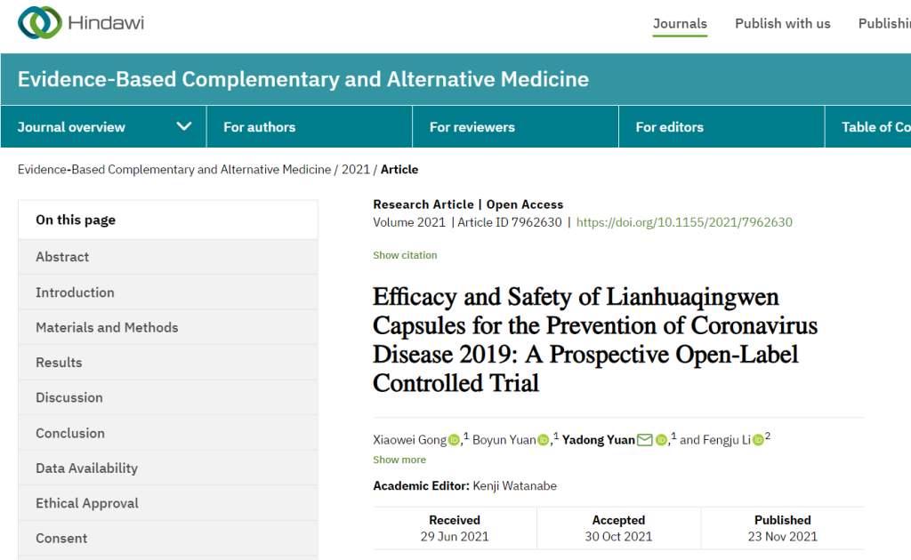 中成藥連花清瘟預防新冠肺炎研究取得重要進展。近日,由中國河北醫科大學第二醫院呼吸與危重癥醫學科、武警河北總隊醫院醫學影像科共同撰寫的科研論文《連花清瘟膠囊預防新型冠狀病毒肺炎的有效性和安全性研究:前瞻性開放標簽對照試驗》于近日在國際期刊《循證補充和替代醫學》發表,揭示出連花清瘟在預防新冠感染中的作用,引發學界廣泛關注。