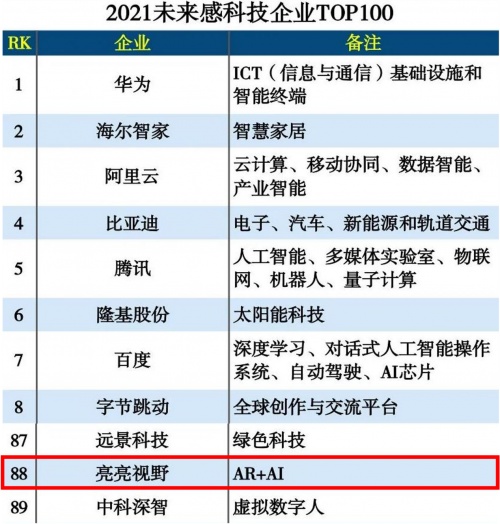 創新向未來,亮亮視野入選「2021未來感科技企業TOP100」