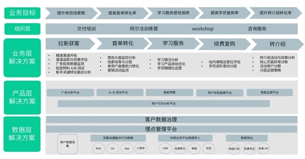 業務層:神策數據擁有豐富的教育行業交付經驗,現已服務百余家知名教培企業,能夠充分理解教培業務,為企業提供個性化、數字化發展規劃與支持。