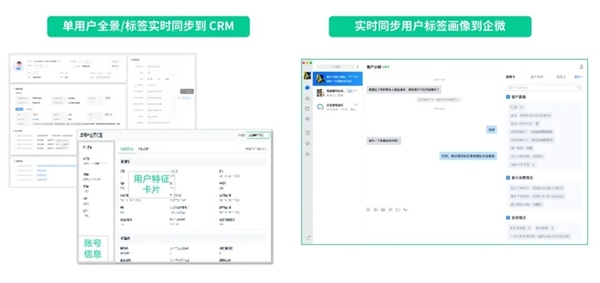 在線索管理層面,基于數據安全合規要求,采集線索的行為、屬性、跟進記錄,不斷豐富用戶畫像,并及時同步至一線銷售人員,比如 CRM 的客戶檔案、企微的客情卡等。