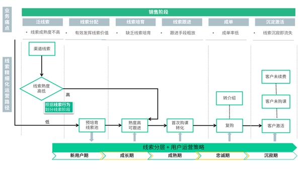 當前,教培企業大多面臨著“大量公海線索難以管理,傳統電銷方式不僅耗費人力還打擾用戶”的困境,因此,設計一套可落地的線索分層培育體系是十分必要的。
