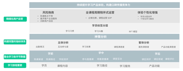 教培機構的口碑依賴于學員對課程服務的評價,因此,基于學習主體與客體的全面分析,是改進課程、驅動學習產品體驗升級的重要依據。
