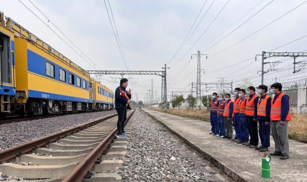 中國中鐵電氣化局運管公司上海維管處合肥維管段年度接觸網三級修工作在長安集綜合維修工區有序開展。氣溫回暖,保證安全生產的同時,消防安全亦不能疏忽。為加強工區車輛運用安全,增強工區作業人員的消防安全知識,提高安全防范意識,預防接觸網檢修列(JJC)突發火情,我們開展了消防演練活動。