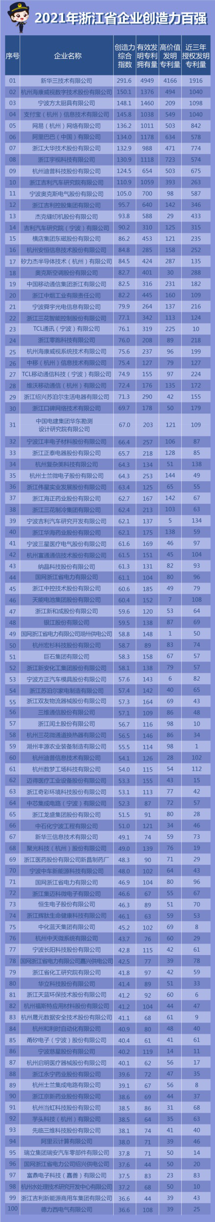 4月27日,浙江省市場監(jiān)管局(省知識產(chǎn)權(quán)局)發(fā)布省創(chuàng)造力百強企業(yè)榜單。