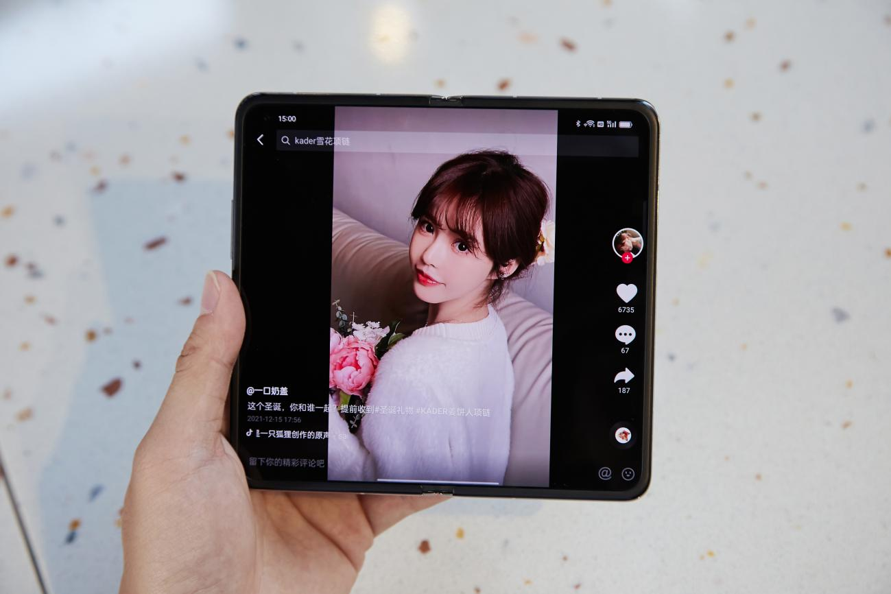 除此之外,OPPO Find N的內屏采用全球首款水滴形態UTG玻璃,為7.1英寸的三星E5材質120Hz高刷LTPO屏幕,8.4:9屏幕比,擁有370PPI的像素密度,8192級無感調節的屏幕亮度,配合上驍龍888處理器,無論是打游戲,還是追劇,都能帶給用戶出色的體驗。
