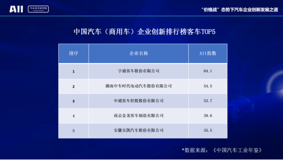 中國汽車(商用車)企業創新排行榜客車TOP5