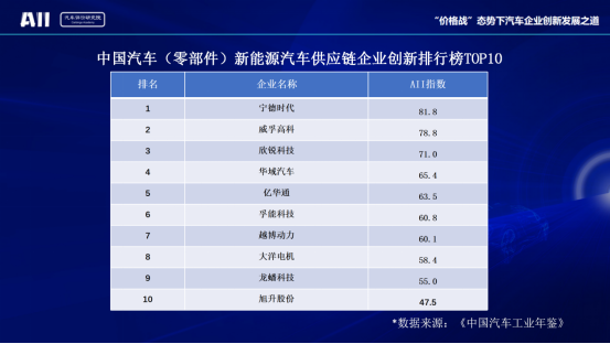 中國汽車(零部件)新能源汽車供應鏈企業創新排行榜TOP10