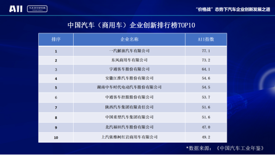 中國汽車(商用車)企業創新排行榜卡車TOP5