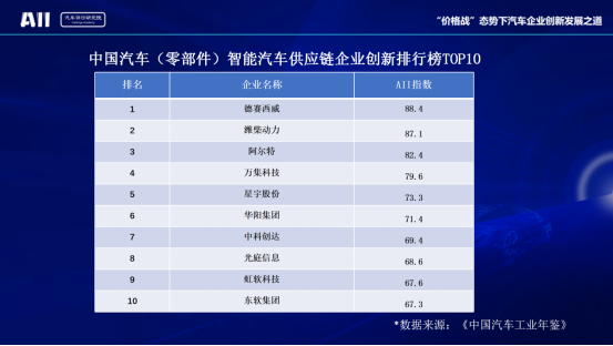 中國汽車(零部件)智能汽車供應鏈企業創新排行榜TOP10